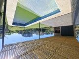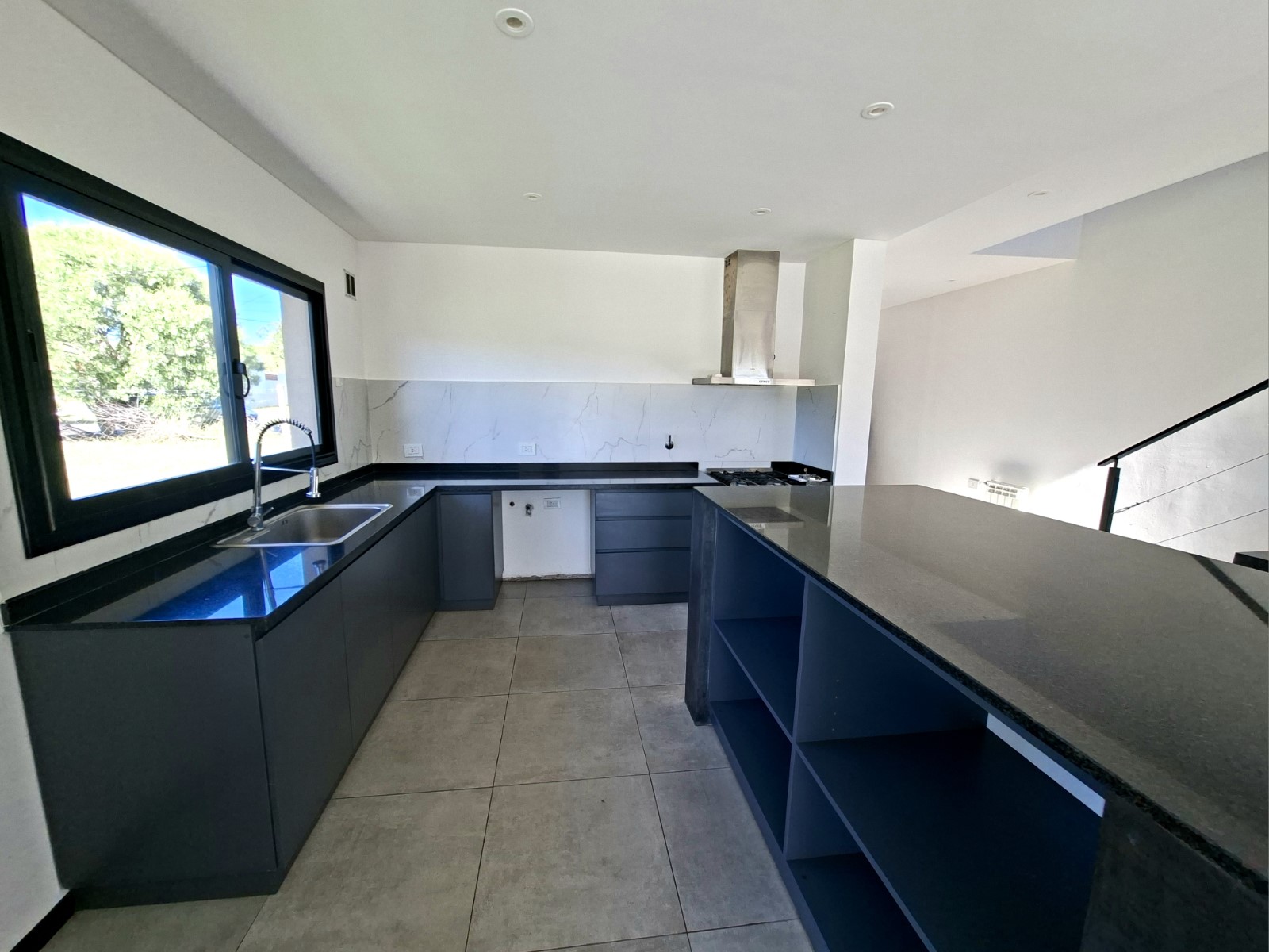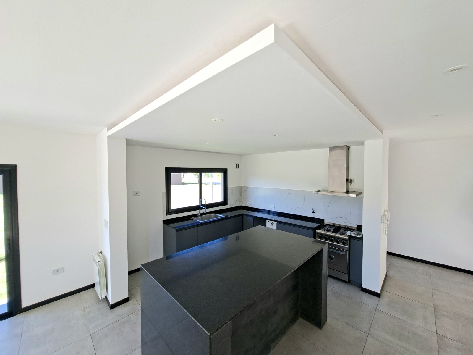 En planta baja cuenta con amplio living comedor con cocina integrada e isla. Escritorio y baño completo. Galería con pérgola, parrilla, lavadero en gabinete, pileta y parque libre.