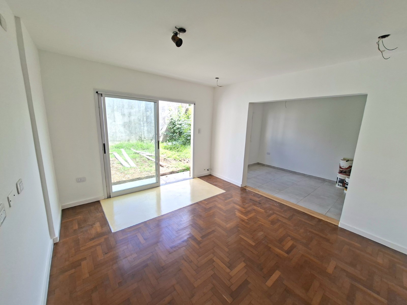 Casa en una planta de dos dormitorios, reciclada a nueva. Posee estar, living y cocina comedor, dos baños completos, garage descubierto para un vehículo, parque y cuarto de guardado.