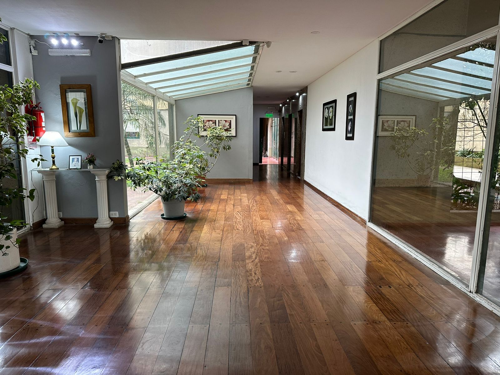 Posee cochera cubierta con portón automático y baulera.