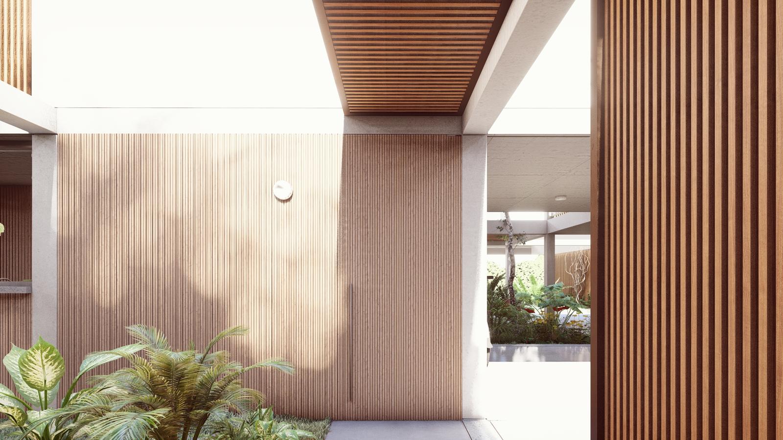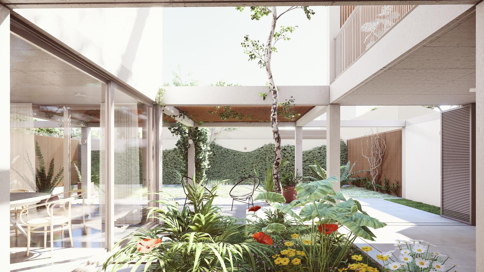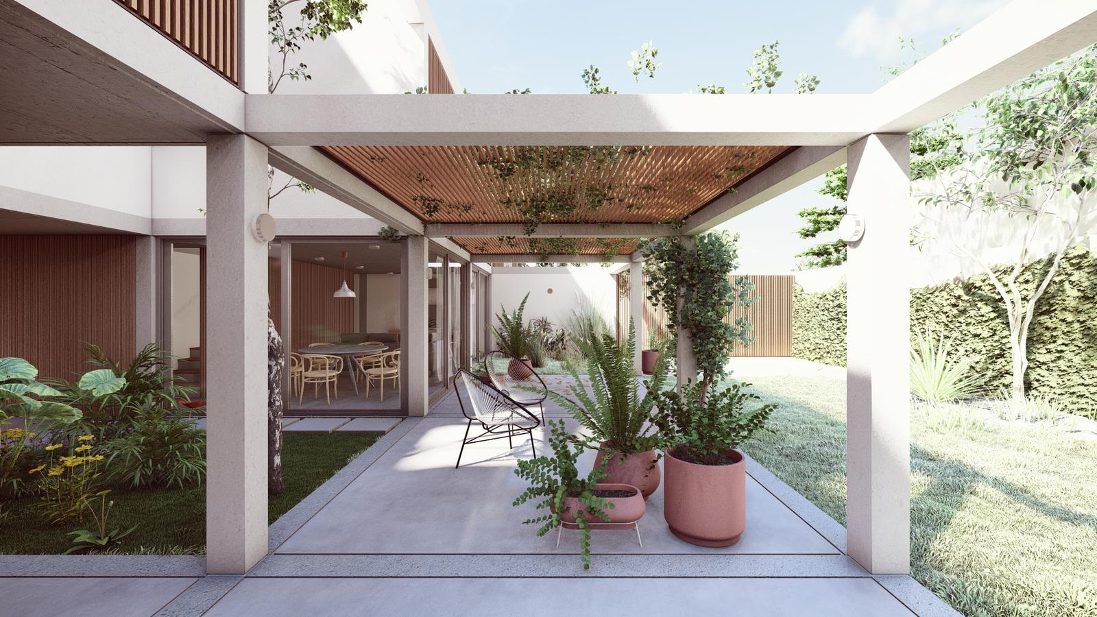 En la planta alta se ubican los tres dormitorios, uno de ellos en suite con vestidor y terraza privada. Baño completo.