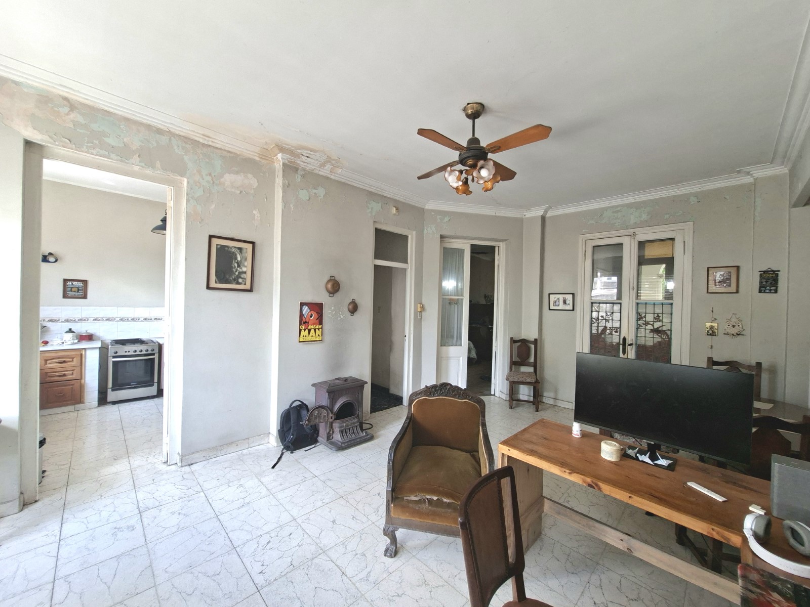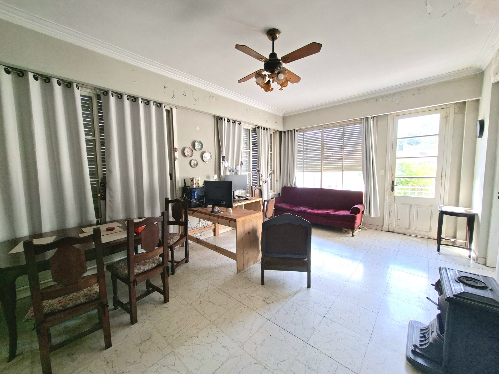 Casa de dos plantas, con tres dormitorios. Casona de 1890 con hall de ingreso. En planta baja, gran estar-comedor, comedor, cocina separada, toilette. Patio, lavadero cubierto. Entrada para dos vehículos.